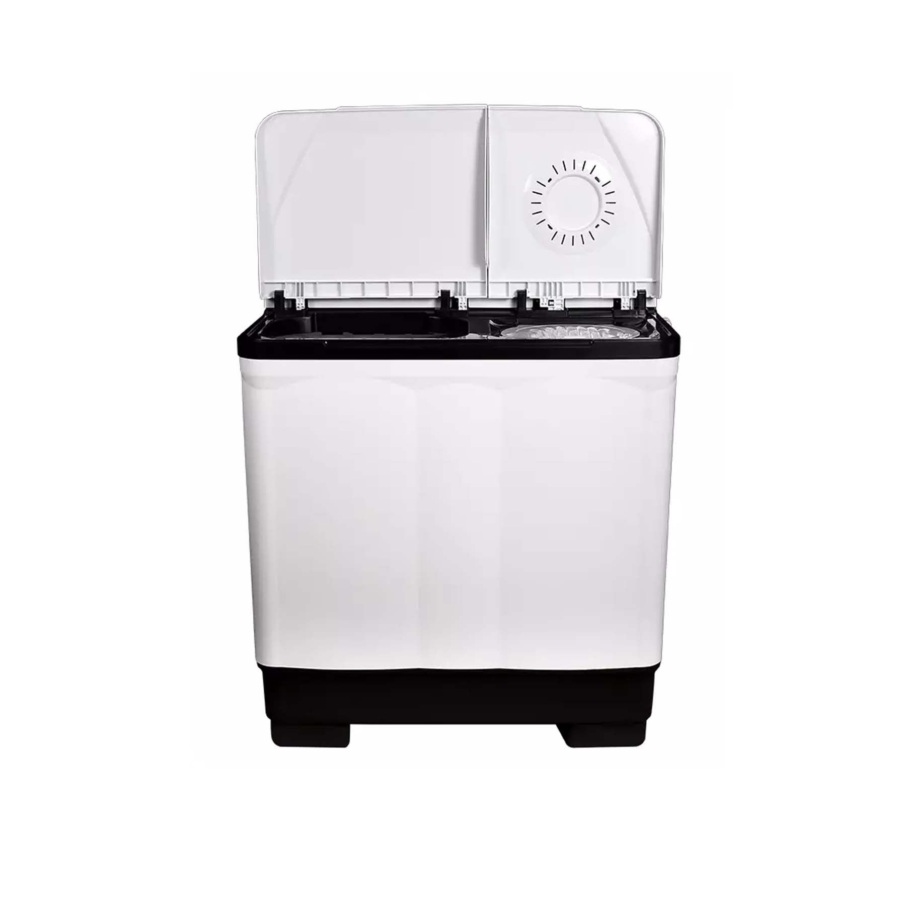 ابعاد دستگاه برابر با ۱۱۵.۵×۱۰۴×۶۴.۵ سانتیمتر است و نسبت به لباسشوییهای اتوماتیک فضای بیشتری اشغال میکند، اما با توجه به ظرفیت ۲۱ کیلوگرمی کاملاً منطقی است. بدنه PVC سبک و مقاوم در برابر رطوبت و ضربه طراحی شده و به کاربر اجازه میدهد دستگاه را حتی در محیطهای نیمهمرطوب مانند حیاط یا تراس محافظتشده استفاده کند. طراحی سطلی با دربهای ABS استحکام خوبی ایجاد کرده و باز و بستهکردن آن نیز روان است. پنل کنترل از نوع چرخشی بوده و سادهترین شکل ممکن برای مدیریت زمان شستشو و خشککن را ارائه میدهد. بخش شستشو و بخش خشککن هرکدام فضای مستقل دارند و کاربر میتواند بدون محدودیت و بهطور همزمان عملیات شستشو و خشک کردن را اجرا کند. لوله ورودی آب، سینی هدایتگر و طراحی کلاسیک دو قلو باعث شده کاربر حتی بدون تجربه قبلی بهراحتی با دستگاه کار کند.